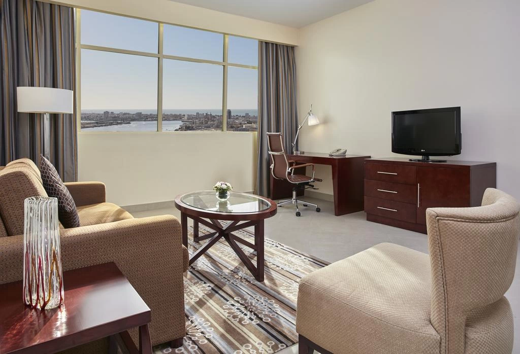 Ванная комната, халаты и тапочки (бесплатно), фен, индивидуальный кондиционер, ЖК-телевизор, спутниковое телевидение, телефон (платно), Wi-Fi (платно), сейф (бесплатно), мини-бар (платно), утюг и гладильная доска (по запросу, бесплатно), набор для приготовления чая и кофе (бесплатно). Уборка номера: ежедневно, смена белья: ежедневно, room service: круглосуточно (платно).