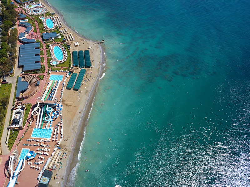 Власний піщано-гальковий пляж на території громадського пляжу (до 600 м). Довжина пляжної смуги: 1000 м. Вхід в море: піщано-гальковий. Між готелем і пляжем проходить дорога. Надається шаттл-сервіс безкоштовно (кожні 30 хв.). Пляжні рушники: безкоштовно (під депозит). Душ на пляжі. Павільйон на пляжі (платно). Бар на пляжі (10:00-23:00): безкоштовн