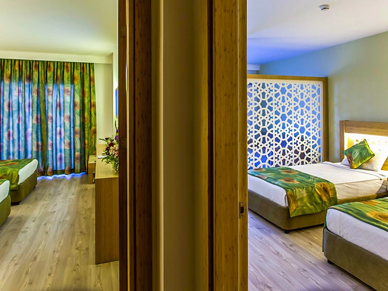 Відкритий дитячий басейн 486 м2, критий дитячий басейн 24 м2, 3 водні гірки, дитяча коляска (платно), міні-клуб від 4-х до 12 років (у Eftalia Island), дитяча анімація російською мовою, вечірній міні-диско.