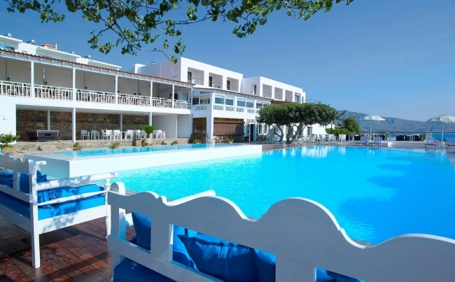 Отель в 70 км восточнее международного аэропорта г. Ираклион, в 8 км от г. Агиос-Николаос, в 2 км от местечка Элунда.