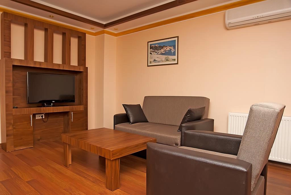 Кондиционер, балкон/терраса, телевизор, телефон, мини-бар (платно), ванная комната, фен, есть номера с джакузи. Уборка номера: ежедневно, обслуживание в номере (платно).