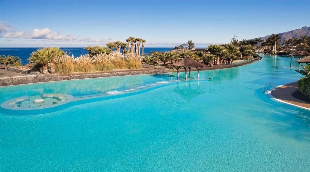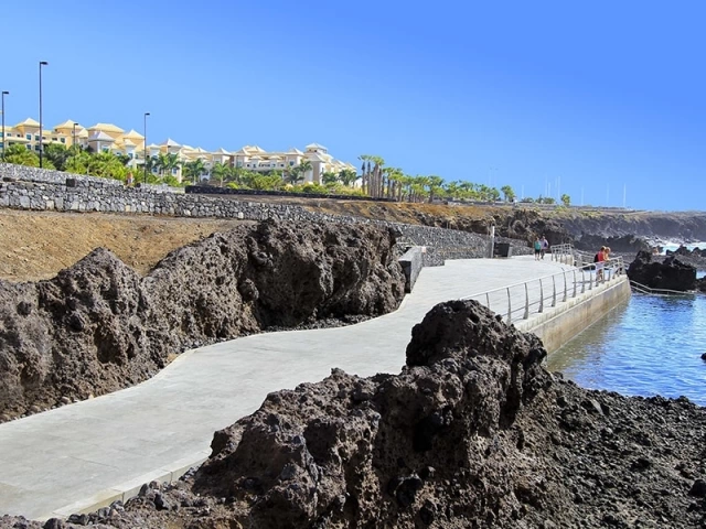 на собственном пляже на юго-западном побережье острова, в 35 минутах езды от аэропорта, в 40 минутах езды от национального парка Las Canadas del Teide, в полутора часах езды от столицы острова Санта Крус.