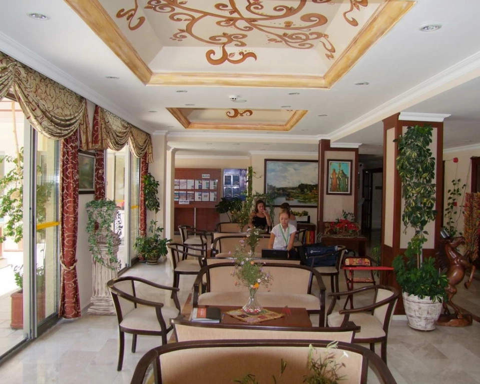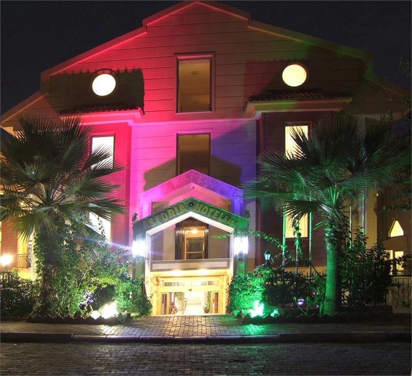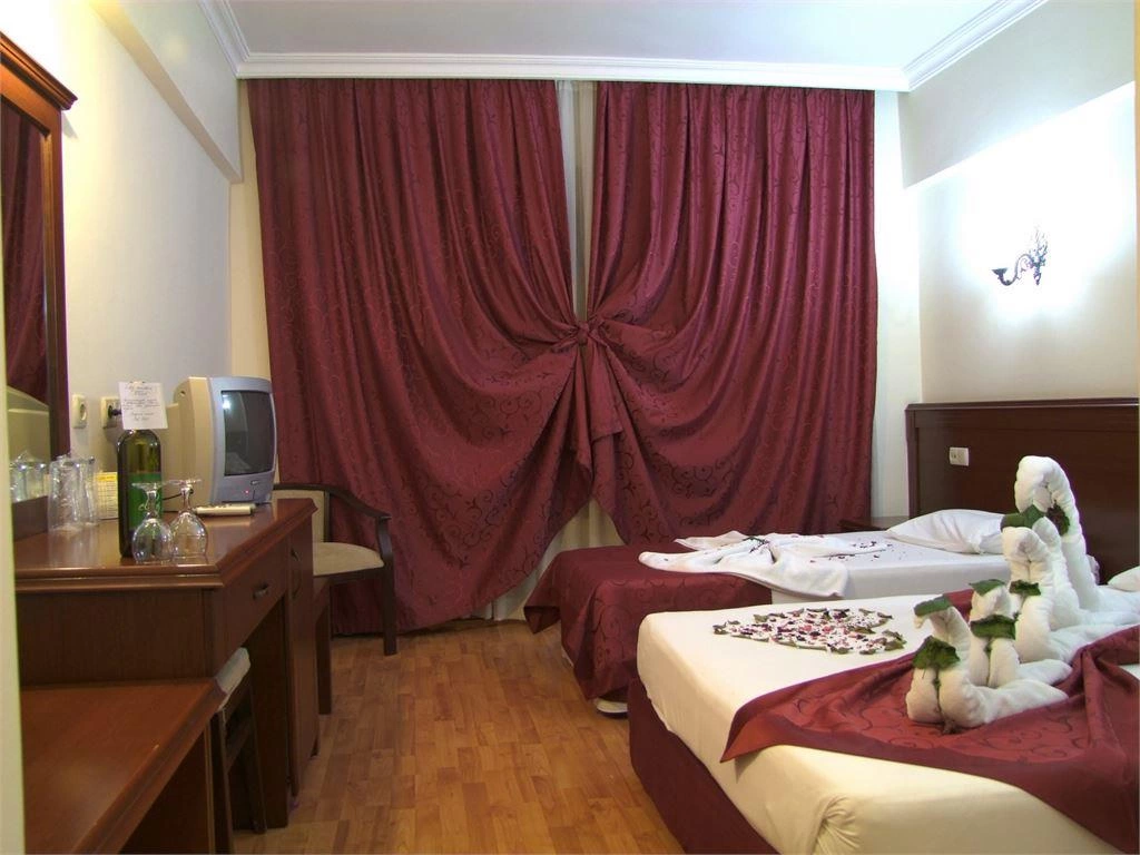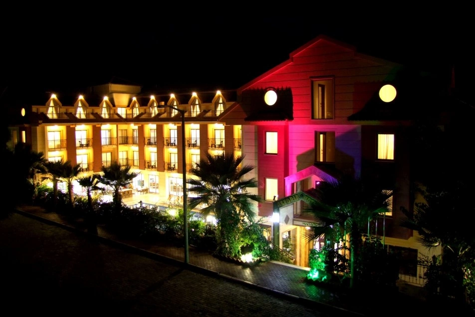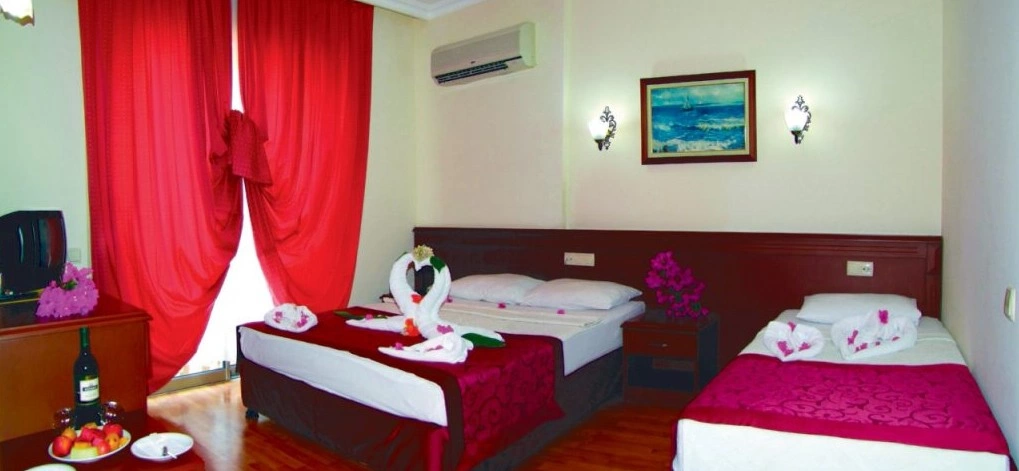 В 55 км от аэропорта г. Анталья, в центре г. Кемер, в 220 м через дорогу от собственного пляжа.