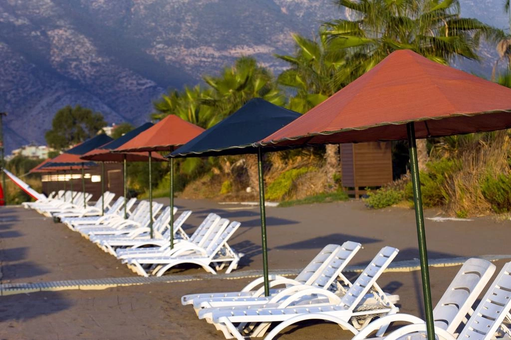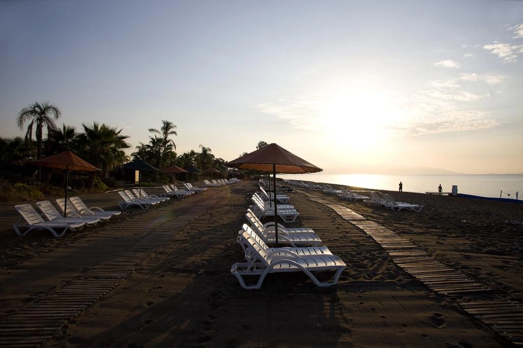 Власний піщаний, перша берегова лінія, в 100 м від готелю через підземний перехід, довжина — 140 м, вхід в море пологий).