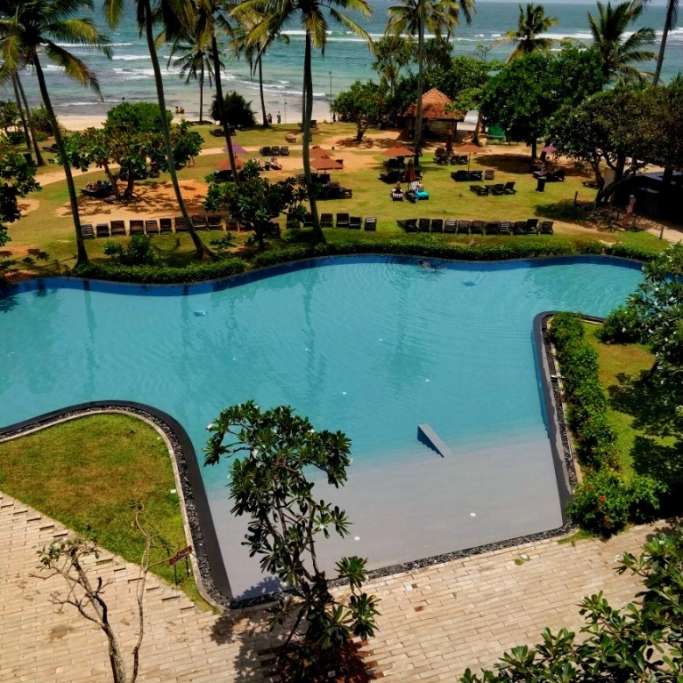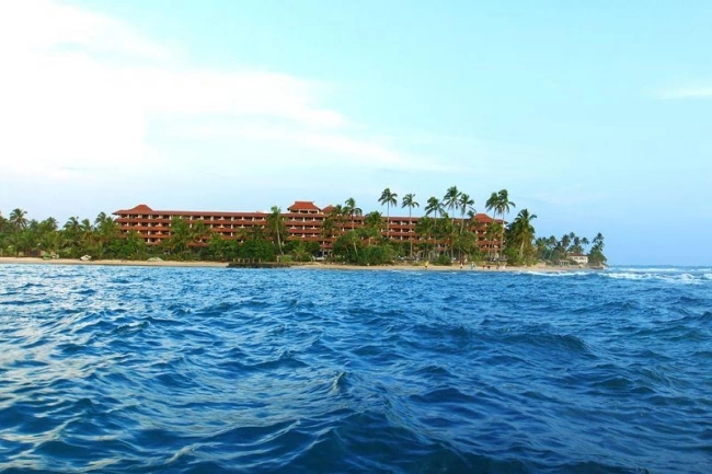 В местечке Хиккадува в 131 км от международного аэропорта, в 99 км от Коломбо.
