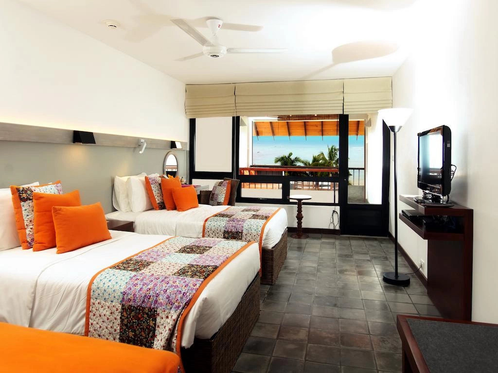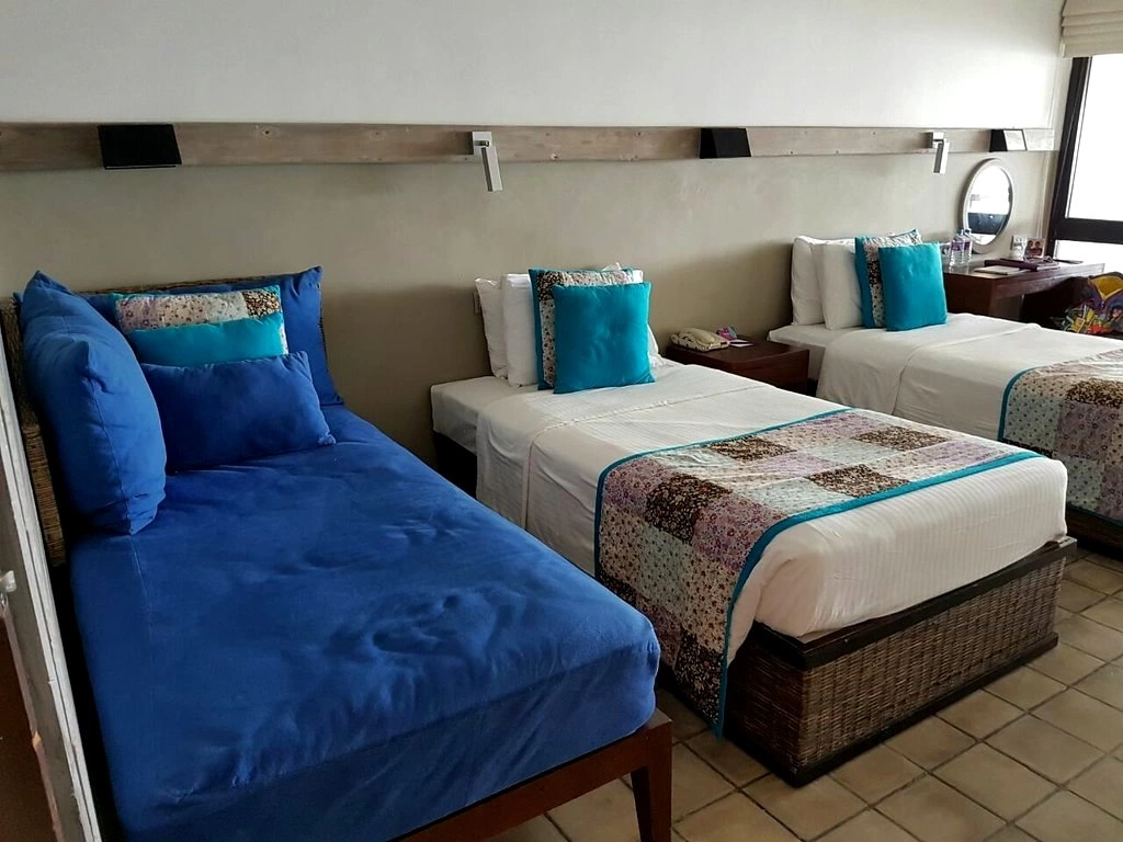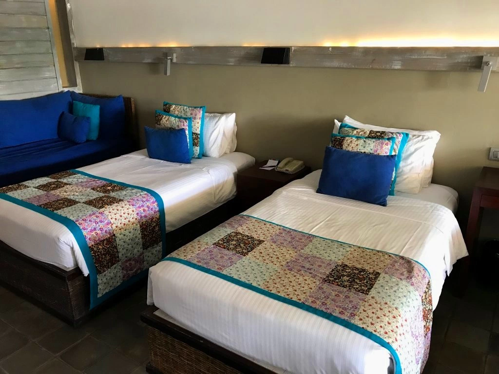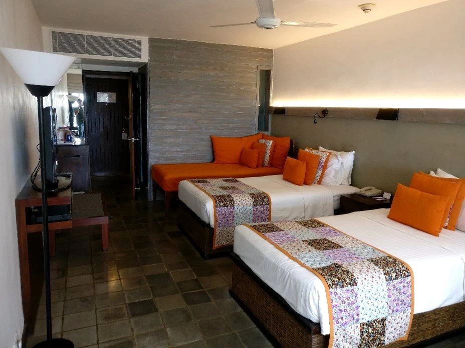 Піщаний пляж перед готелем (тиха лагуна, куди кожен день припливають гігантські черепахи). Шезлонгів і парасольок на пляжі немає, тільки на території готелю.