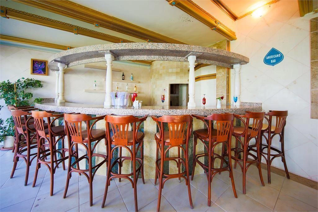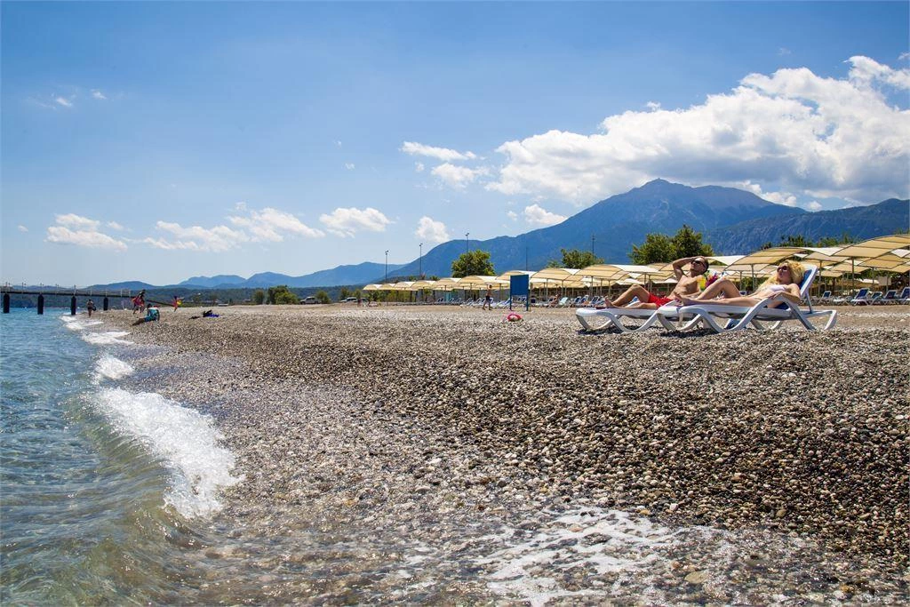 Пляж протяжністю 350 м. Бар на пляжі безкоштовно. Рушники — депозит.