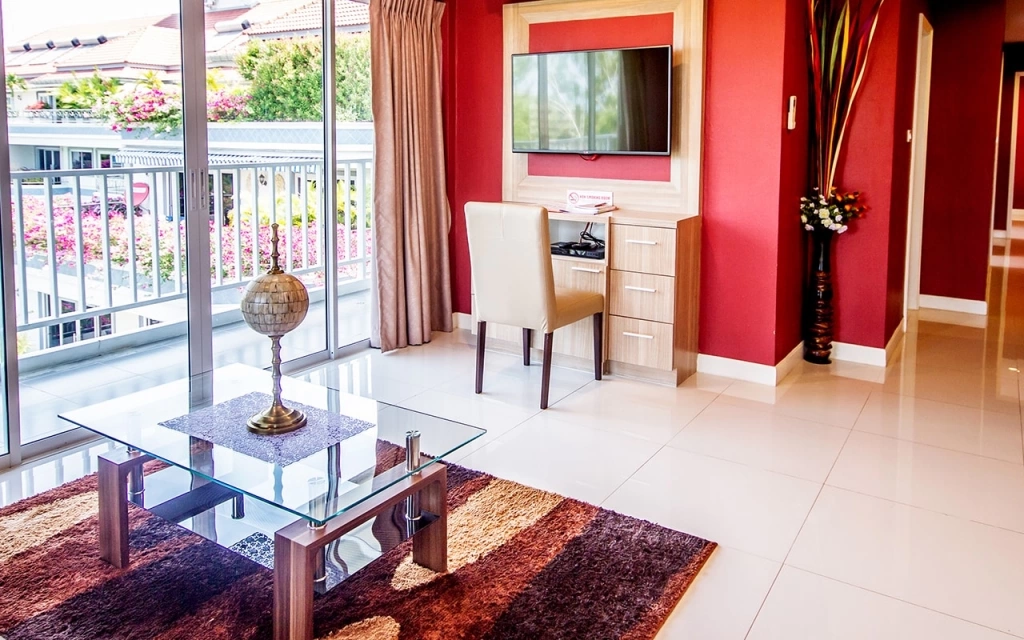 Кондиционер (бесплатно), телевизор, DVD проигрыватель, телефон, Wi-Fi (бесплатно), сейф (бесплатно), стол, стул, кресло / софа, мини-бар, холодильник, 2 бут.воды ежедневно бесплатно, набор для приготовления чая/кофе, душ (с туалетными принадлежностями), фен — по запросу, бесплатно, балкон/терраса, кухня — в номерах 2-bedroom: СВЧ, электроплита (для кратковременного пользования-до 10 мин, не для длительной готовки), посуда — по запросу, кухня — в номерах 3-bedroom penthouse: СВЧ-печь, посуда, электроплита (для кратковременного пользования-до 10 мин, не для длительной готовки), room service (платно), услуга wake-up.