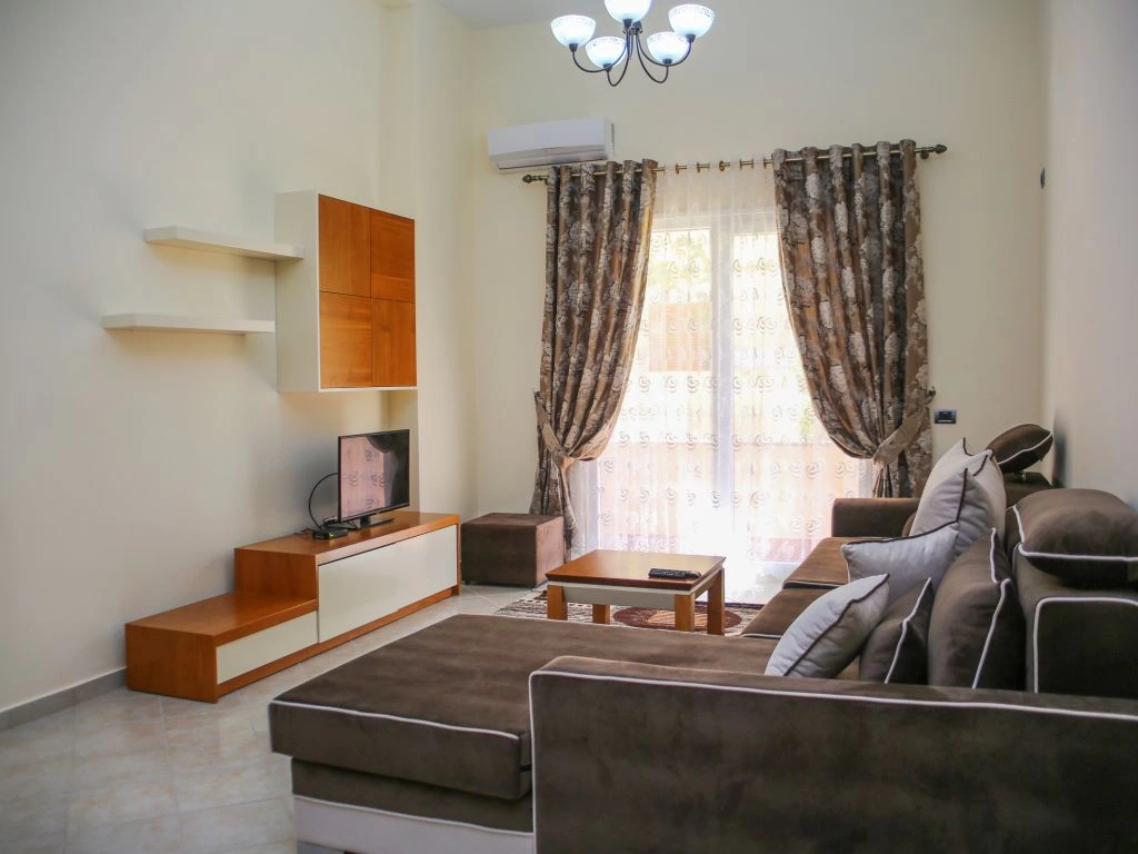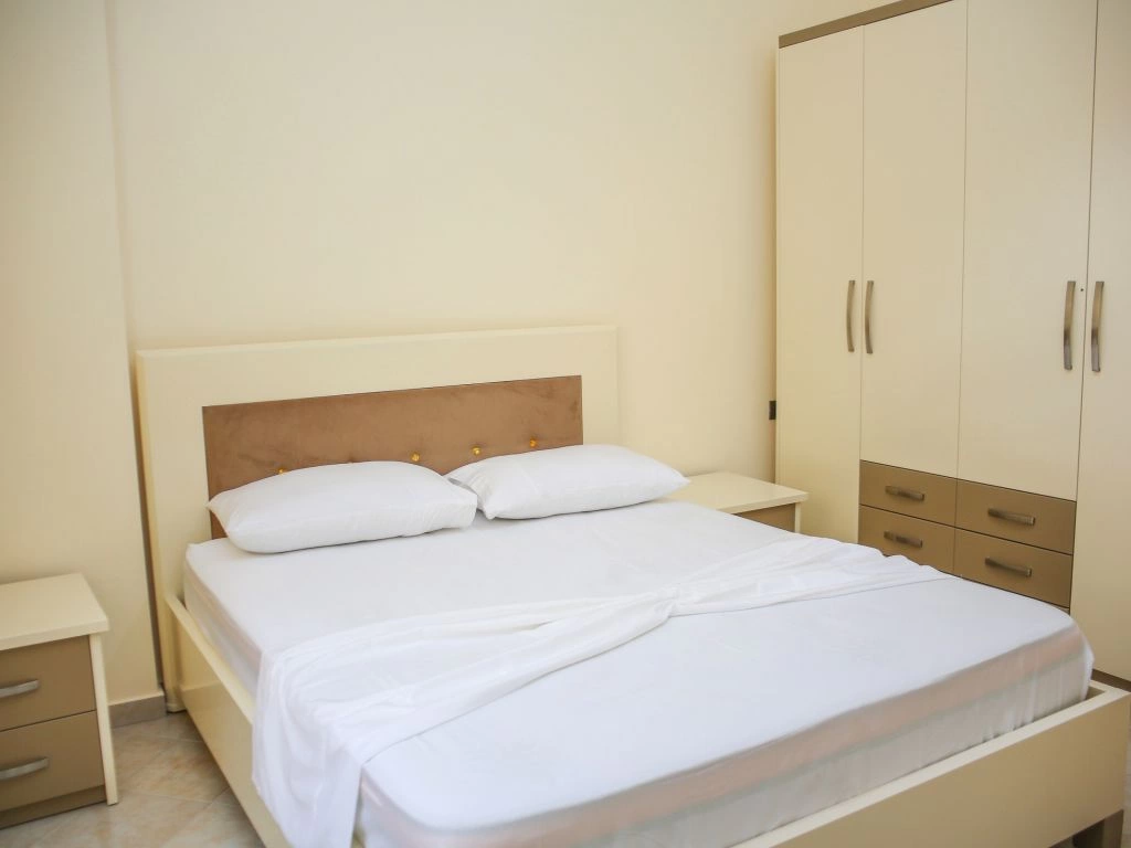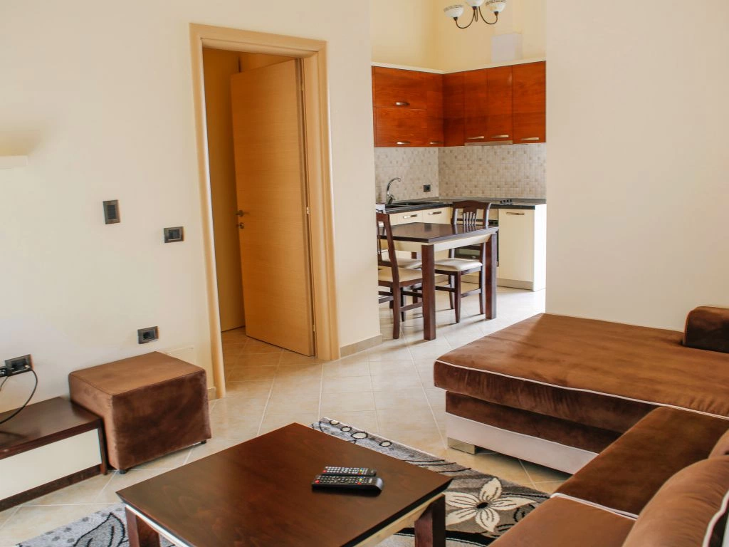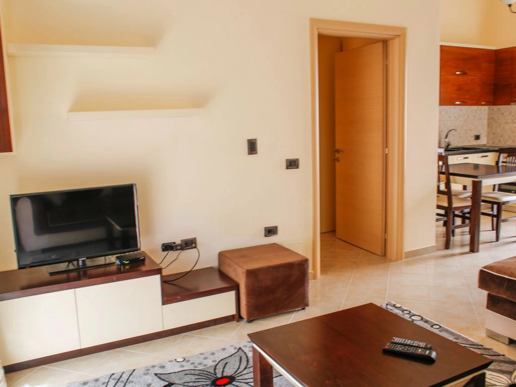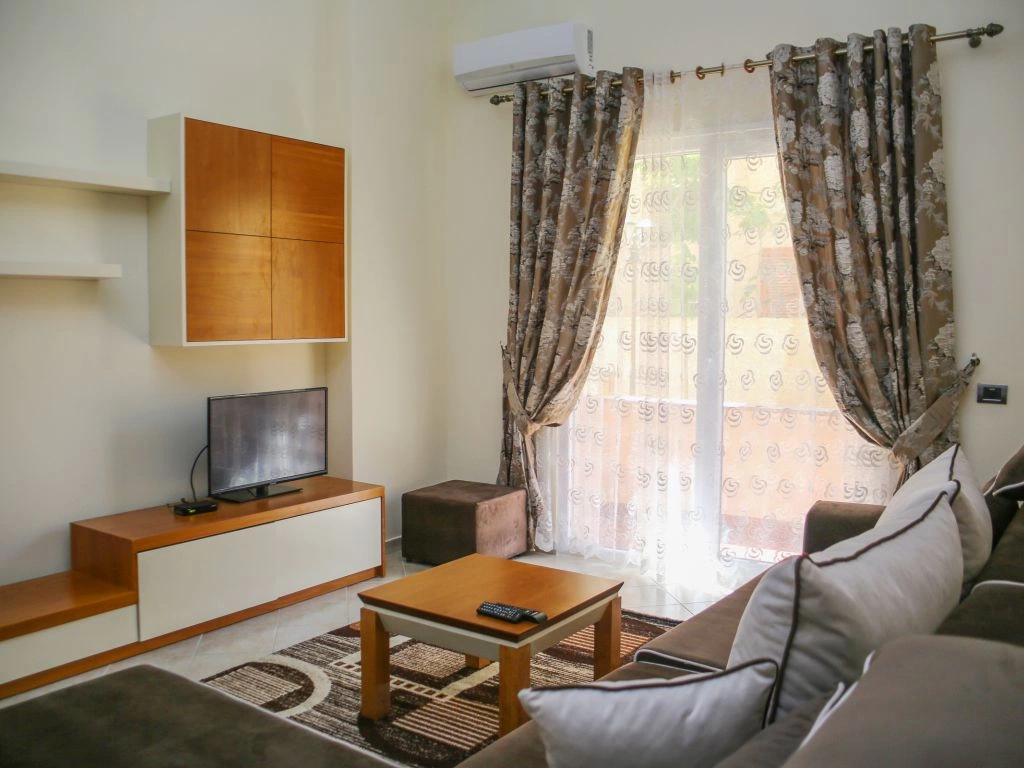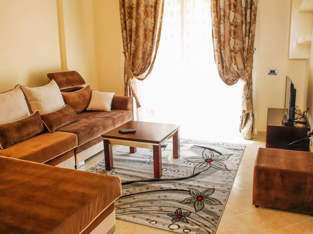 Во всех апартаментах 1+1: балкон, кондиционер, телевизор, набор полотенец, ванная комната (фен в апартаментах, душ, ванные принадлежности). В гостиной: диван-кровать, телевизор со спутниковыми каналами, кухонный стол со стульями, встроеная кухня со всеми кухонными принадлежностями и необходимой кухонной утварью, стиральная машинка. Обстановка спальни состоит из шкафа и кровати с комфортными размерами: двухспальная — 160×200 см. Уборка апартаментов (1 раз в 2 дня). Смена постельного белья (1 раз в 4 дня). Во всех студиях: кондиционер, телевизор, набор полотенец, ванная комната (фен в апартаментах, душ, ванные принадлежности), телевизор со спутниковыми каналами, кухонный стол со стульями, встроеная кухня со всеми кухонными принадлежностями и необходимой кухонной утварью, двухспальная кровать — 160×200 см. Уборка апартаментов (1 раз в 2 дня). Смена постельного белья (1 раз в 4 дня).