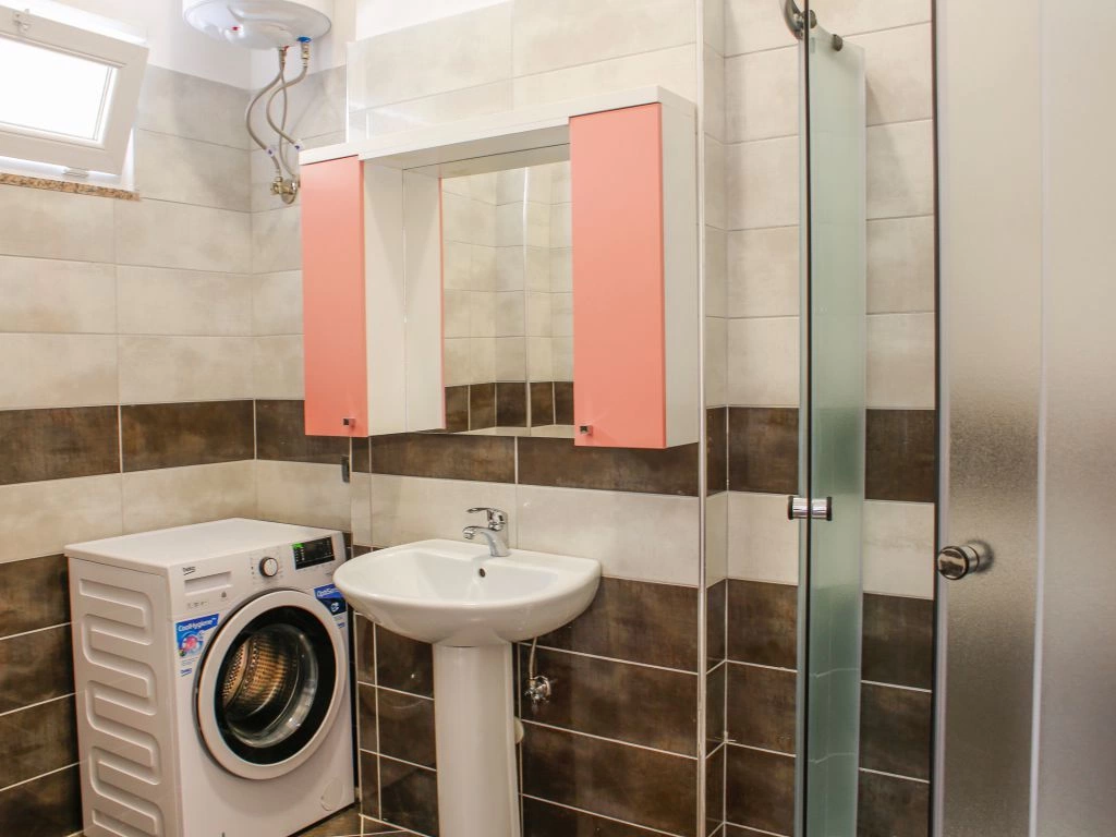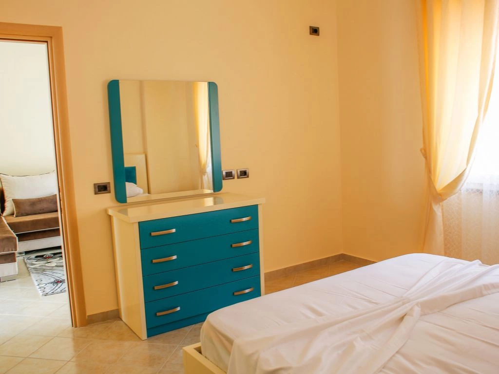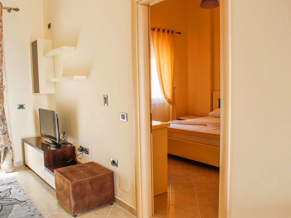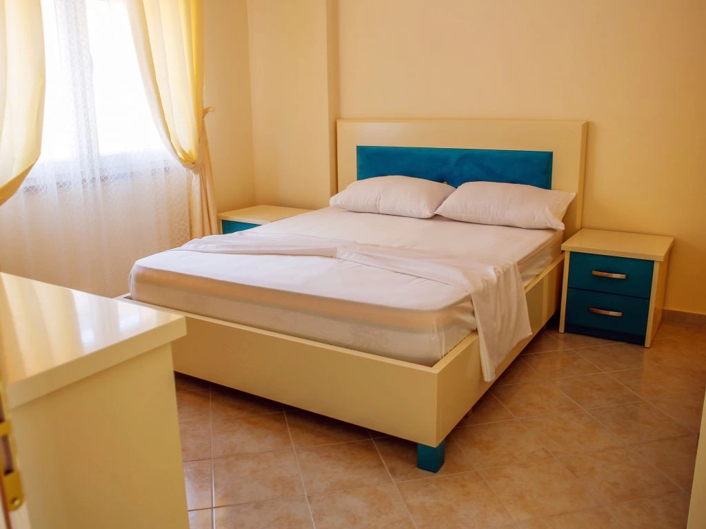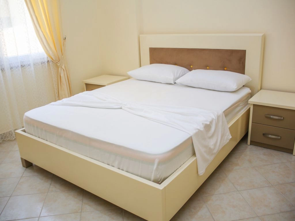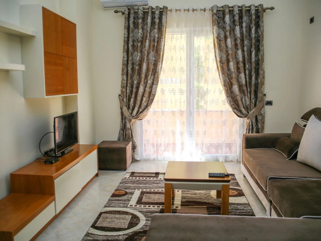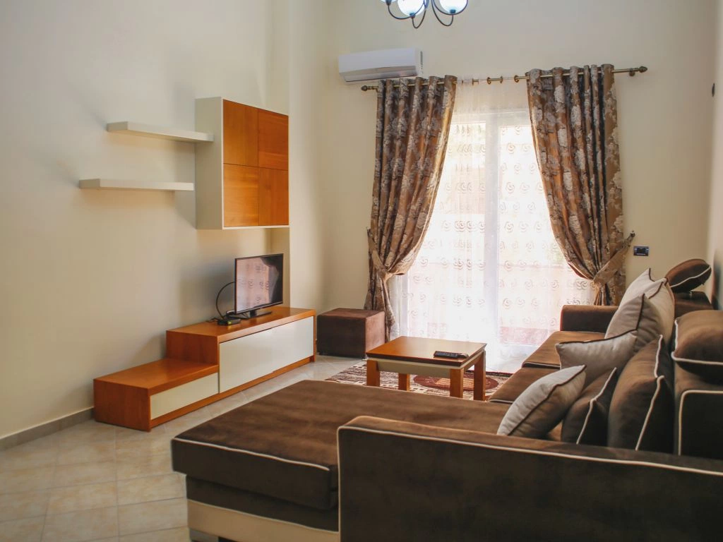 Во всех апартаментах 1+1: балкон, кондиционер, телевизор, набор полотенец, ванная комната (фен в апартаментах, душ, ванные принадлежности). В гостиной: диван-кровать, телевизор со спутниковыми каналами, кухонный стол со стульями, встроеная кухня со всеми кухонными принадлежностями и необходимой кухонной утварью, стиральная машинка. Обстановка спальни состоит из шкафа и кровати с комфортными размерами: двухспальная — 160×200 см. Уборка апартаментов (1 раз в 2 дня). Смена постельного белья (1 раз в 4 дня). Во всех студиях: кондиционер, телевизор, набор полотенец, ванная комната (фен в апартаментах, душ, ванные принадлежности), телевизор со спутниковыми каналами, кухонный стол со стульями, встроеная кухня со всеми кухонными принадлежностями и необходимой кухонной утварью, двухспальная кровать — 160×200 см. Уборка апартаментов (1 раз в 2 дня). Смена постельного белья (1 раз в 4 дня).