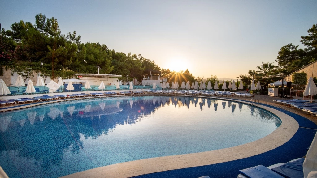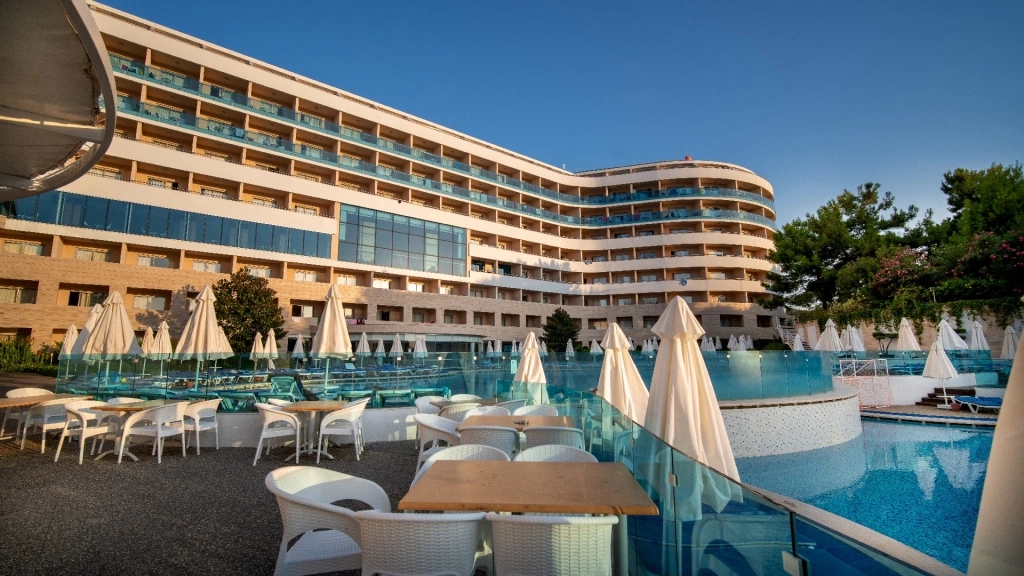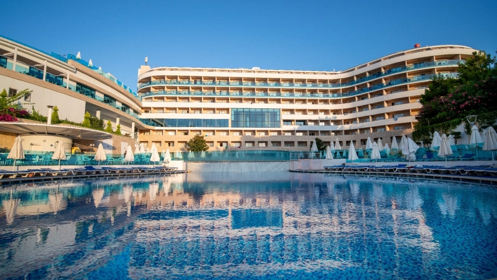 Основний ресторан – закрита секція розрахована на 800 чол., відкрита на 400 чол. 2 аля-карт ресторану: османський і рибний (по резервації). 10 барів. 5 відкритих басейнів– 890, 945, 220 (18+), 380 і 115 кв. м 2 конференц-зали, 210 кв. м і 60 кв. м, на 175 і 50 чол.