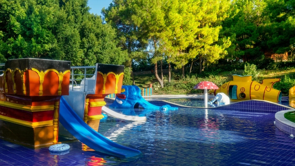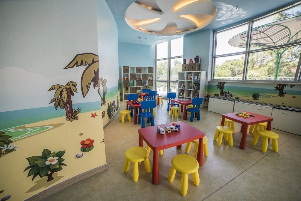 Дитяча анімація російською мовою; міні-клуб (4-12 років) з ліжечками; 2 дитячих відкритих басейну 150 і 49 кв. м, дитячий басейн в аквапарку 540 кв. м, 8 гірок; критий ігровий зал, 120 кв. м; дитячі коляски (платно).