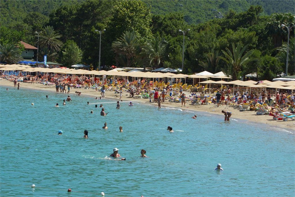 Власний піщано-гальковий пляж знаходиться на 1 100 м від готелю. Протяжність пляжу становить 100 м. Курсує шатл до пляжу і центру п. Кемер, безкоштовно. Пляжні рушники — платно. Захід в море — галька. Душ, кабіни для переодягання, рятувальник. Бар на пляжі: платно (прохолодні напої).