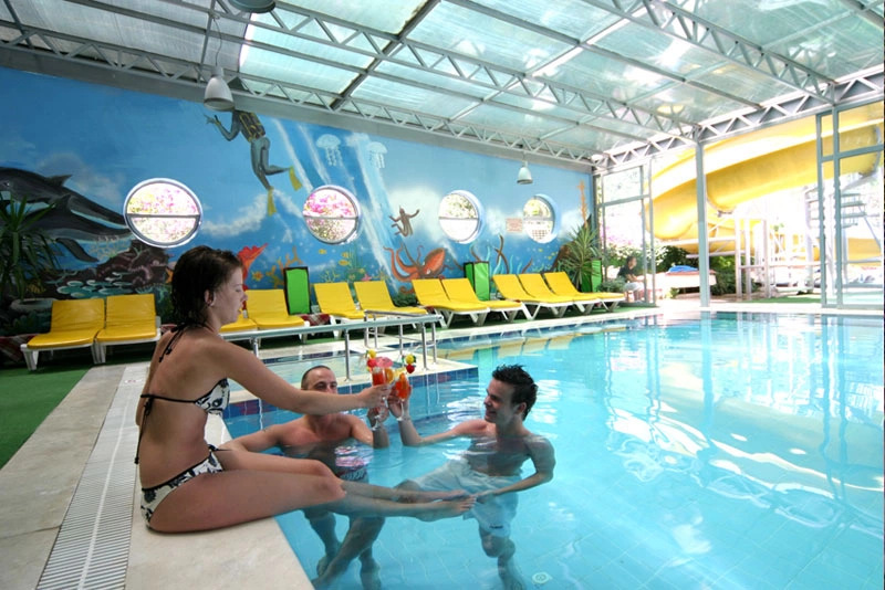 Безкоштовно: 1 водна гірка, сауна, турецька ніч, жива музика, ТБ-зал, дартс, шахи. Платно: пілінг, водні види спорту на пляжі.