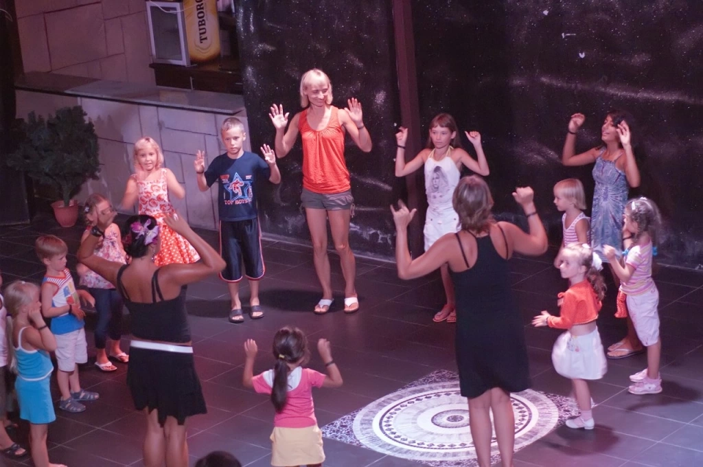Дитяча секція в відкритому басейні з водною гіркою (15 м2, глибина 0,35 см), міні-клуб (4-12 років), ігрова кімната, дитяча анімація російською мовою.
