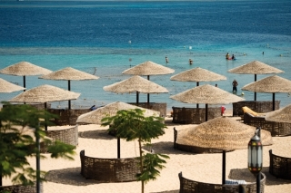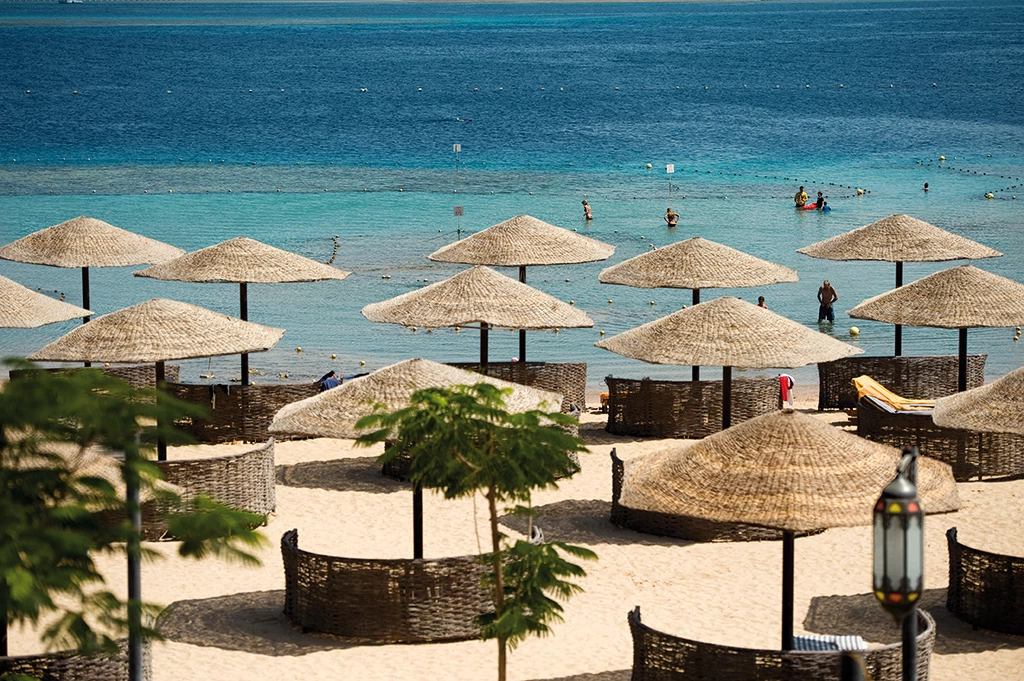 Відстань до пляжу 500 м, через Sunwing Waterworld. Пляжна смуга 1000 м. Коралові рифи розташовуються в безпосередній близькості від берега, вхід в море кам'янистий, рекомендується спеціальне взуття. Є піщаний «коридор» для заходу в море, не вимагає спеціального взуття.