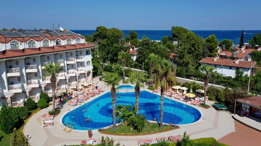В 64 км от аэропорта г. Анталия, 5 км от г. Кемер, в п. Чамьюва.