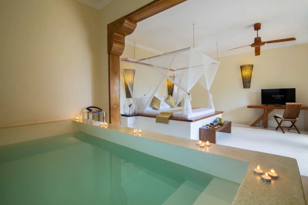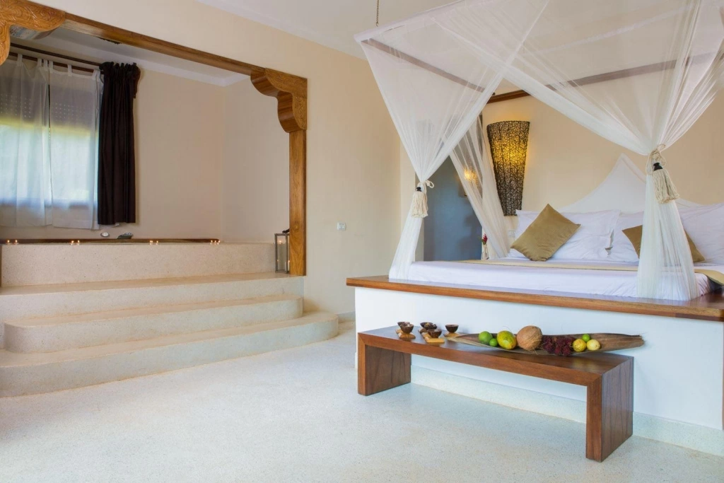 Кондиционер, потолочный вентилятор, телевизор со спутниковыми каналами, мини-бар, сейф, кровати с противомоскитными сетками, бесплатный Wi-Fi, ежедневная уборка номера.