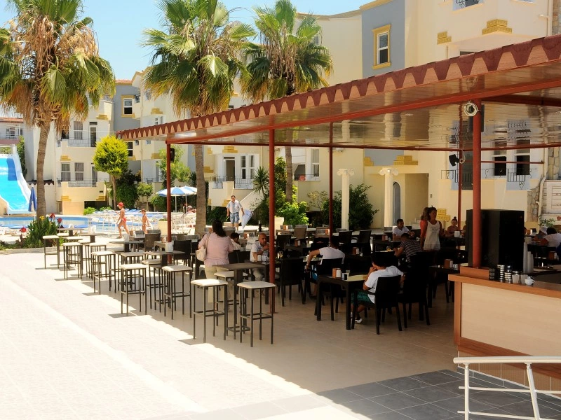 Сніданок 08:00-10:00, обід 12:30-14:00, закуски 11:00-18:00, вечеря 19:00-21:00, пізній вечеря 00:00-01:00. Бар біля басейну 10:00-02:00. Магазини.