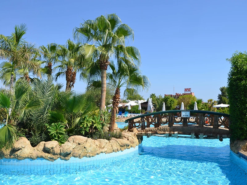 3 відкритих басейни (1 з підігрівом в зимовий час), міні-клуб (вік 4 – 12 років), міні-зоопарк.