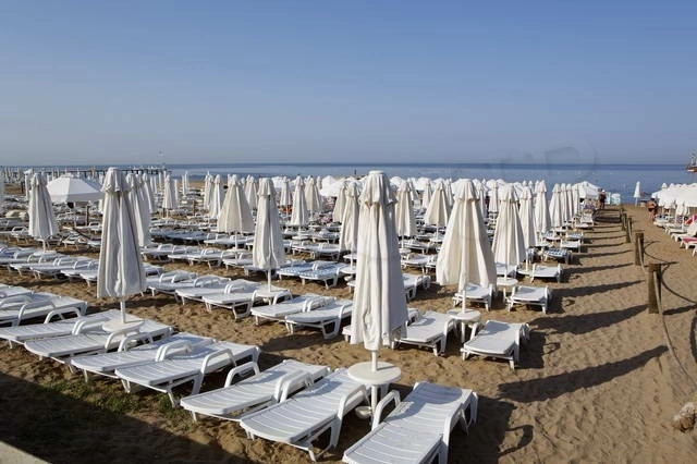 Власний гальковий пляж знаходиться в 250 м від готелю, через дорогу. Шезлонги, парасольки, матраци — безкоштовно, пляжні рушники — депозит. Захід в море — галька. Кабінки для переодягання, душ, туалет на пляжі.