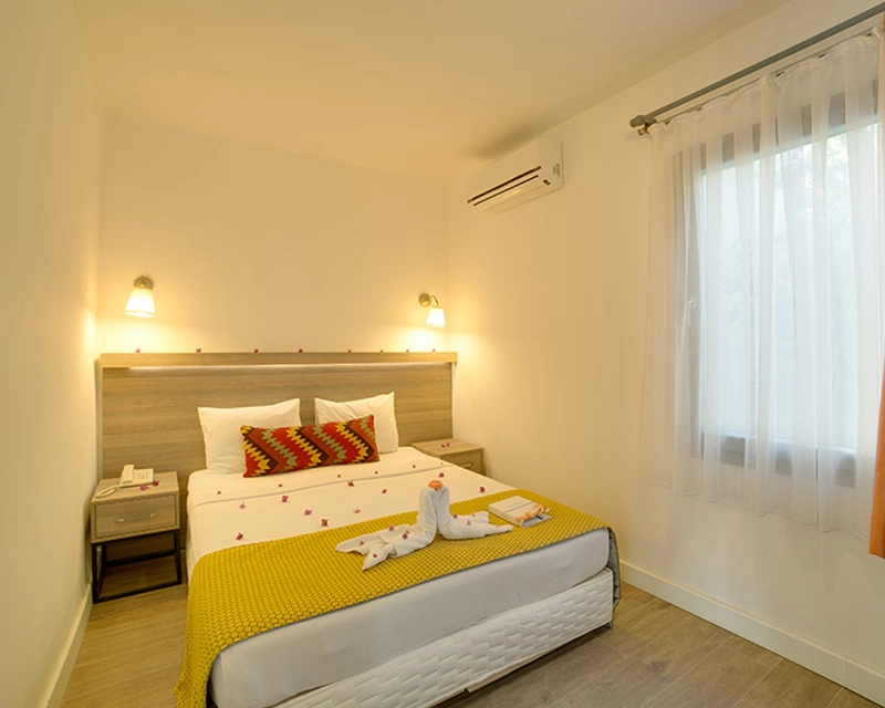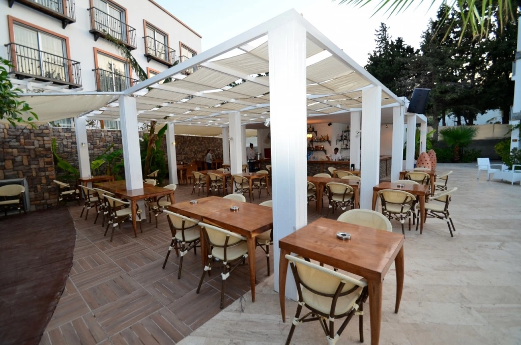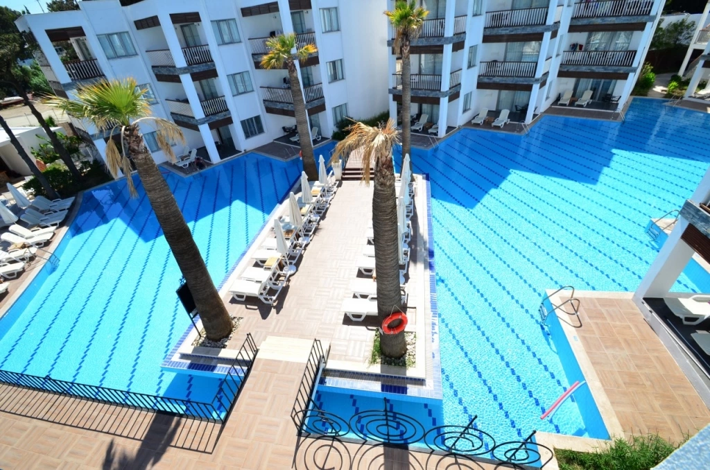 В 55 км от аэропорта г. Бодрум, 24 км от г. Бодрум, 8 км от п. Тургутреис, 1 км от п. Акярлар.