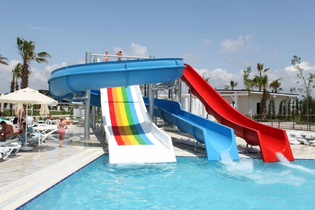 2 басейни (1 критий, 1 відкритий), 5 дитячих гірок. Міні-клуб для дітей від 4 до 12 років. Прокат дитячих колясок, по попередній резервації (безкоштовно).
