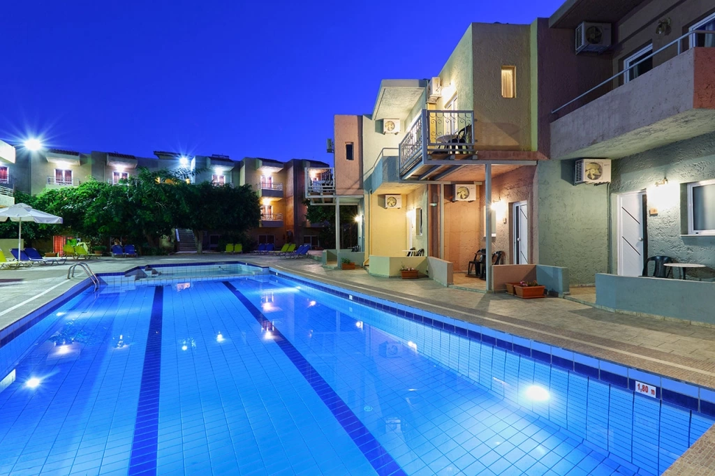 Небольшой отель расположен в тихом поселке Кокини Хани, в 5 минутах ходьбы от центра курорта. Рядом с отелем Вы сможете найти множество уютных баров и ресторанов, магазинов. Построен в 1988 году, последнее обновление в 2012 году. Отель отлично подходит для отдыха семьям с детьми.