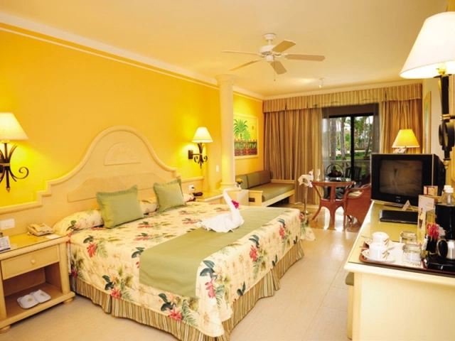 Кондиционер (бесплатно), потолочный вентилятор, телевизор, спутниковое ТВ, телефон, будильник, сейф (бесплатно), Wi-Fi (платно), утюг и гладильная доска, мини-бар бесплатно (пополнение бесплатно), кофеварка, набор для приготовления чая/кофе (бесплатно), 2 двуспальные кровати или 1 king-size, письменный стол, раскладной диван, ванная комната с ванной и гидромассажным душем, косметическое зеркало, фен, туалетные принадлежности, балкон/терраса. Уборка номеров: ежедневно, смена полотенец: ежедневно, услуга звонок-будильник (бесплатно), room service (платно).