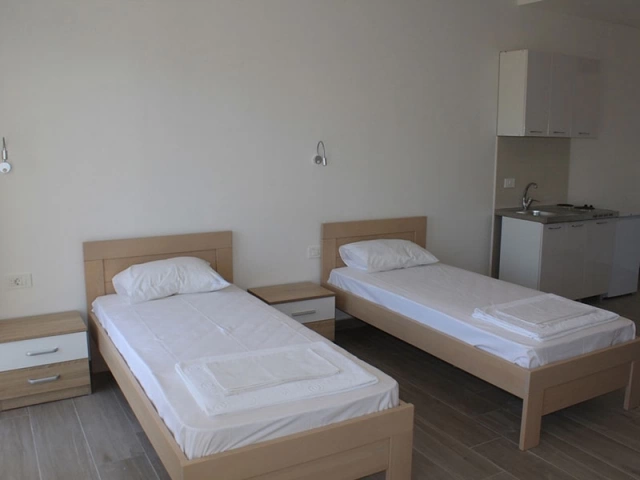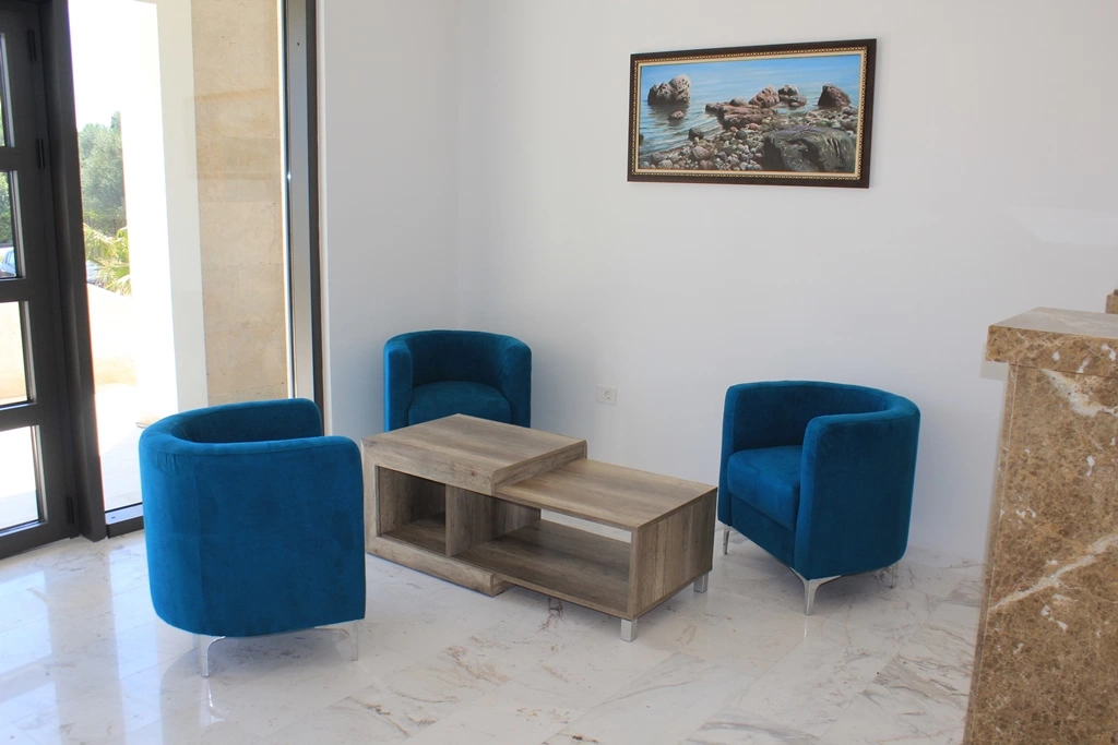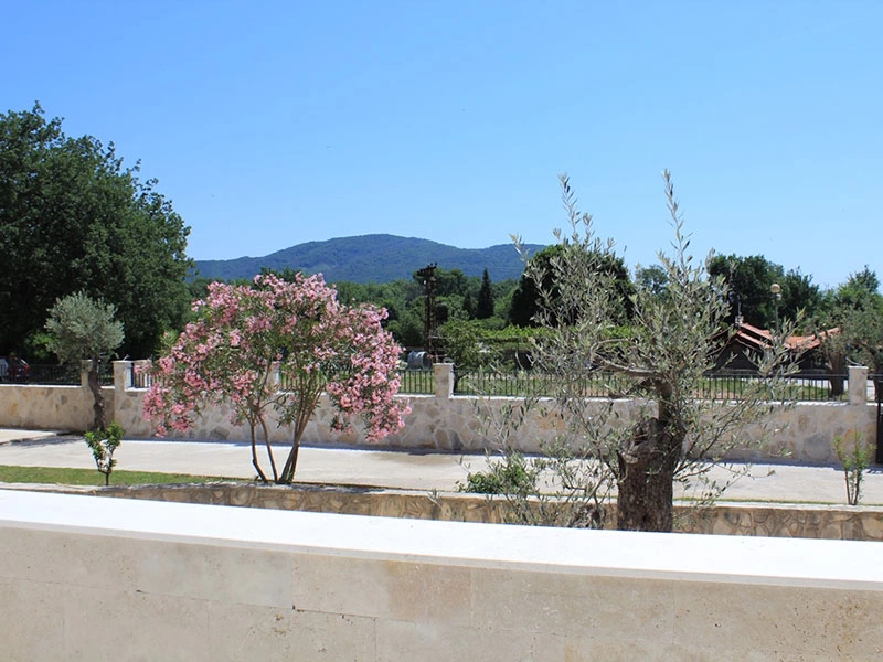 В 350 м від вілли. Пляж – кам'янистий з південно-східної сторони, гальковий – в центрі пляжу і піщано-гальковий – з західної сторони.