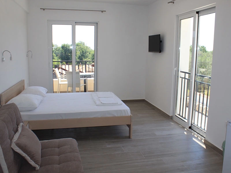 Кондиционер, телевизор, кухонный блок, раскладное кресло, ванная комната с душем, фен, бесплатный Wi-Fi, терраса / балкон.