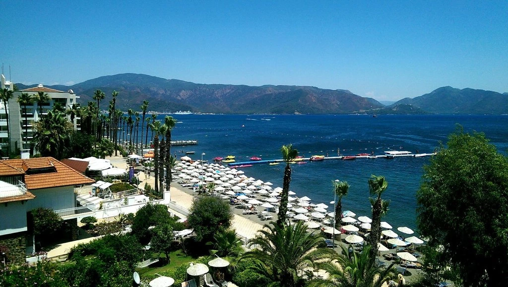 В 95 км от аэропорта г. Даламан, 3 км от центра г. Мармарис.