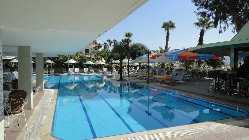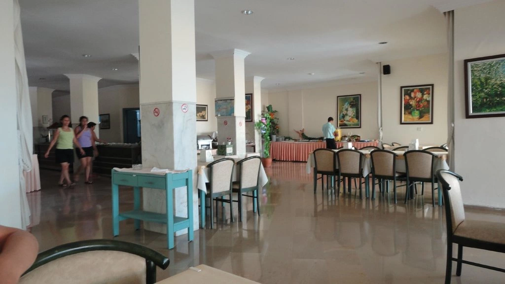 цілодобова стійка реєстрації гостей, Wi-Fi в лобі (безкоштовно), room service-24 години, 3 бари: лобі бар, бар біля басейну (платно) 08:00-01:00, бар на пляжі, 1 основний ресторан Flamingo: сніданок 07:00-10:00, вечеря 19:00-21:30 — шведський стіл, 1 відкритий басейн без підігріву, площа 200 кв. м, години роботи з 09:00-19:00.
