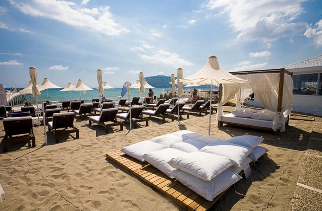 Приватна пляжна зона в 100 метрах від готелю, через дорогу.