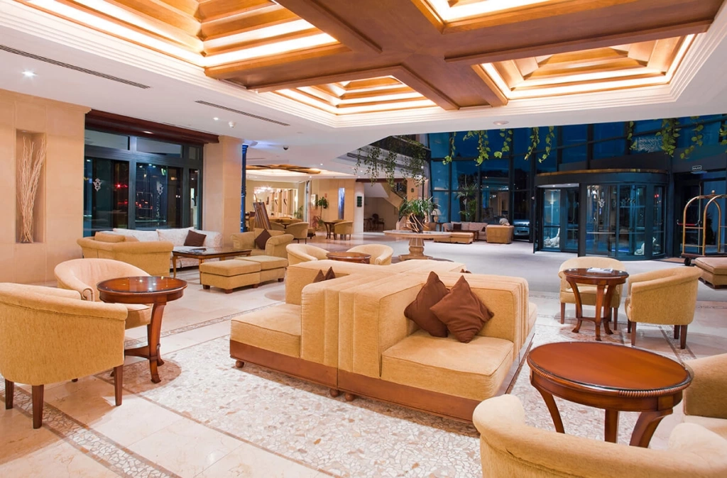 На території готелю є 4 ресторани, бар, тераса, сад, магазини в готелі. Доступні послуги консьєржа, доставка преси (платно), цілодобове обслуговування номерів, сніданок в номер, v.i.p. послуги, послуги по прасуванню одягу (платно), факс/ксерокопіювання (платно), послуга дзвінок-будильник. Цілодобова стійка реєстрації. Є камера зберігання багажу, ко