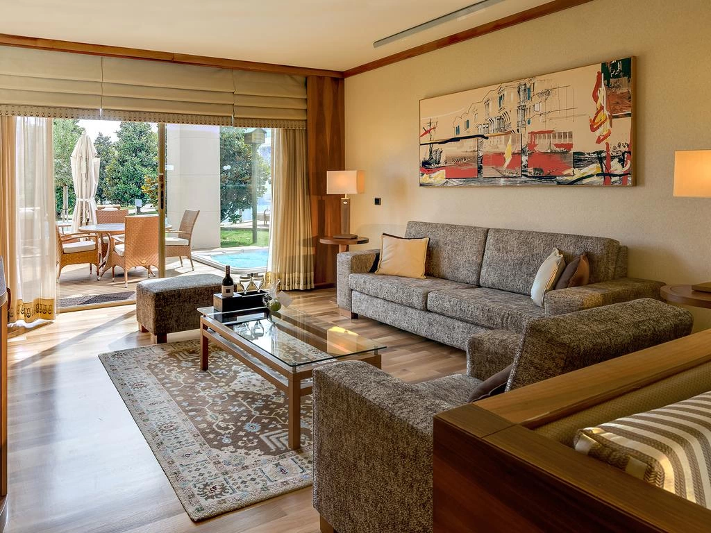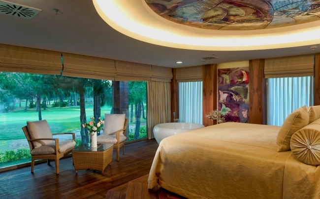 В номерах представлено: центральный кондиционер, плазменный телевизор (8 русских каналов), мини-бар (прохладительные и алкогольные напитки, пополняется ежедневно, бесплатно), прямой телефон, беспроводный интернет (бесплатно), джакузи и душевая кабина, фен, халат и тапочки, весы, сейф (бесплатно), гардероб для инвентаря для игры в гольф, балкон или терраса, корзинка с фруктами (в день заезда), cервис еды и напитков в номер бесплатный с 23:00 до 07:00.