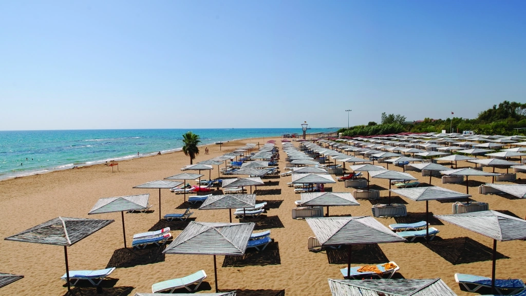 В 50 м від готелю. Між готелем і пляжем проходить променад. Протяжність пляжу — 900 м. Душ на пляжі.