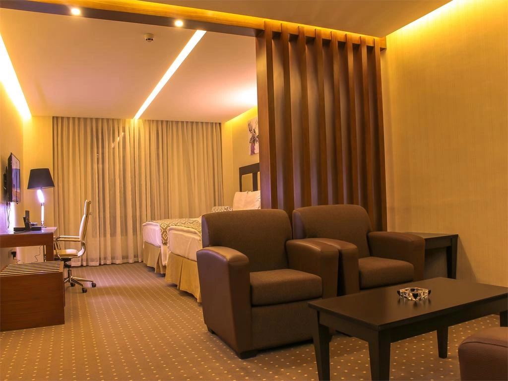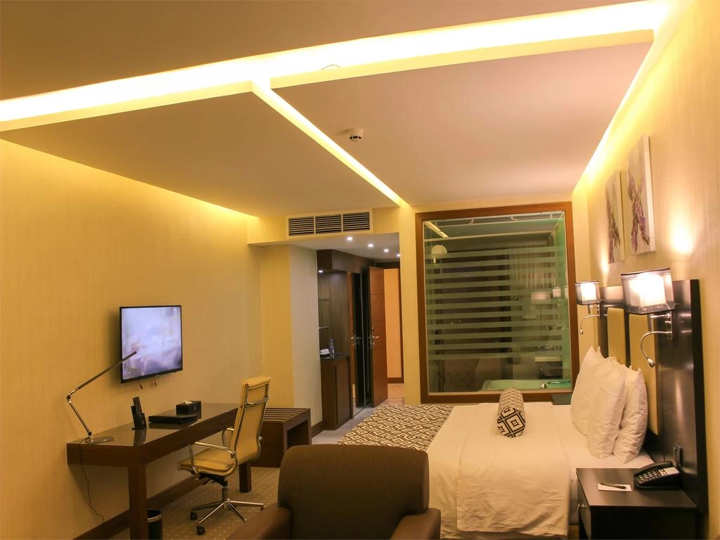 Кондиционер, вентилятор, телевизор с плоским экраном и спутниковыми каналами, телефон, сейф, мини-бар, электрический чайник, весы, ванная комната с ванной, банные халаты и тапочки, бесплатные банные принадлежности, фен, ковровое покрытие, бесплатный Wi-Fi, ежедневная уборка номера.
