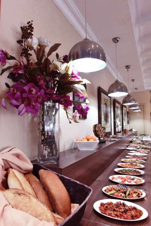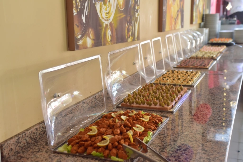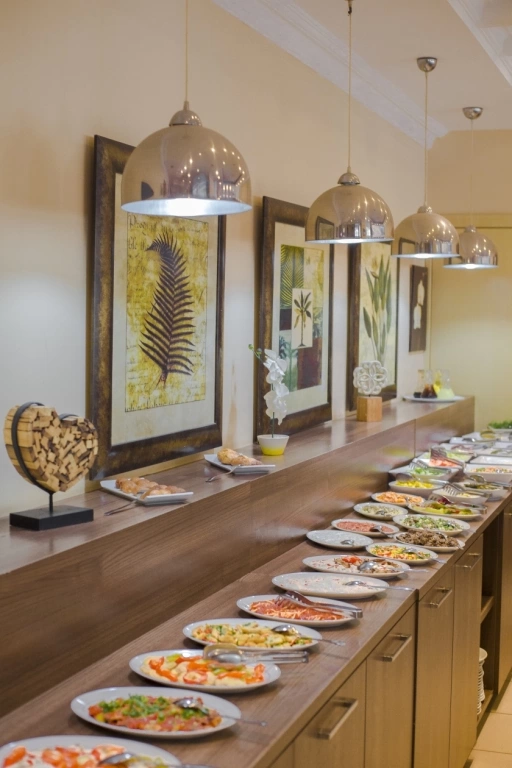 Бар біля басейну 10:00-18:30. Бар в ресторані. Сніданок 07:00 - 09:00, пізній сніданок 09:00 - 10:00, обід 12:30 - 14:00, закуски 11:00 - 17:30, вечеря 19:00 -21:00. Система «Все включено» діє з 10:00 до 22:00, включає напої місцевого виробництва, морозиво. Платно: імпортні напої, коктейлі, енергетичні напої, свіжовичавлений сік. 1 відкритий басейн