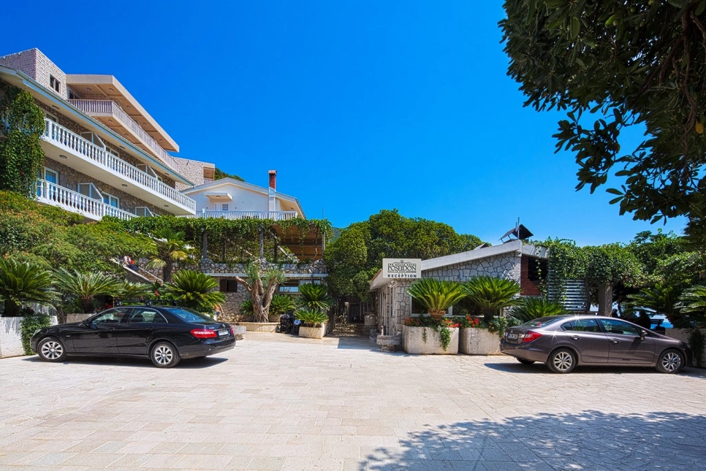 Hotel Poseidon – симпатичный отель, расположенный у подножия холма, прямо на пляже Яз, который считается самым чистым и красивым на черногорском побережье. Подходит для спокойного отдыха. Отель находится в 4.5 км от центра Будвы - Старого города, в 13 км от города Тиват, в 14 км от Котора. Год строительства: 2007, последний ремонт в 2015.
