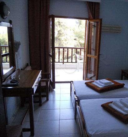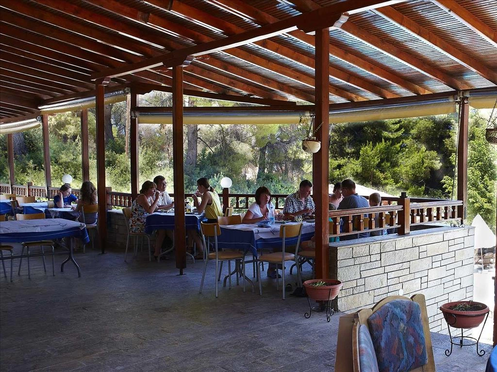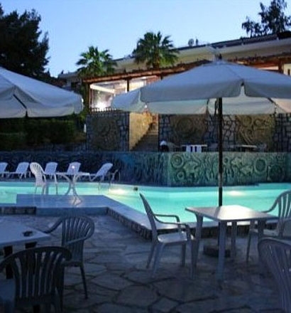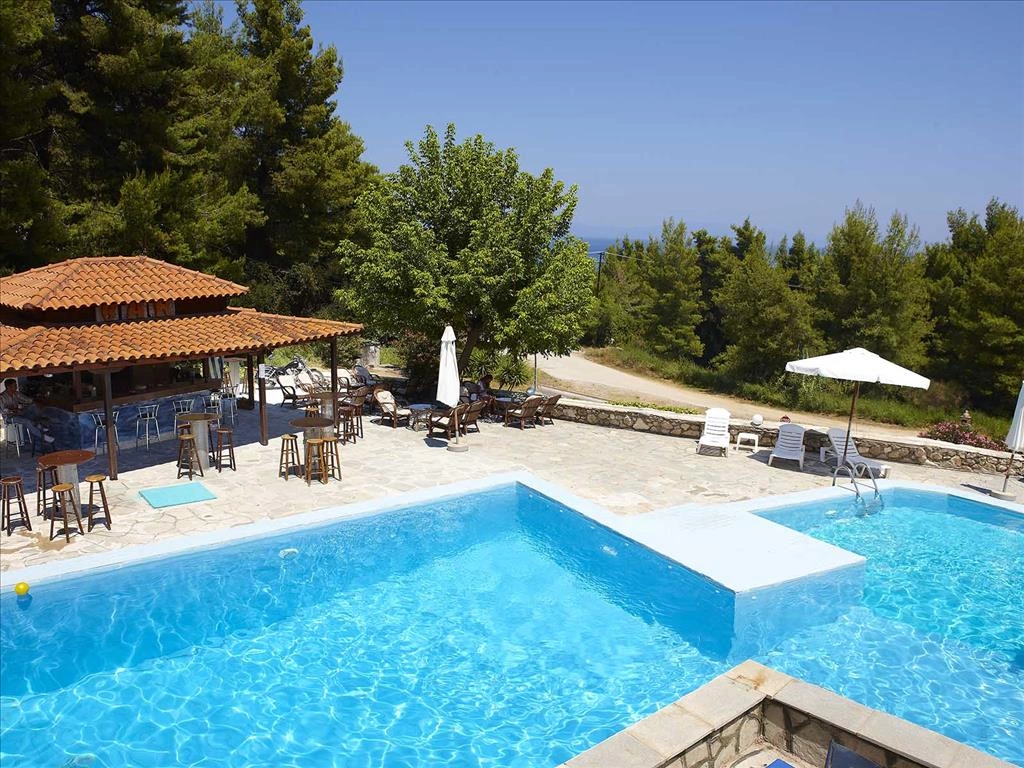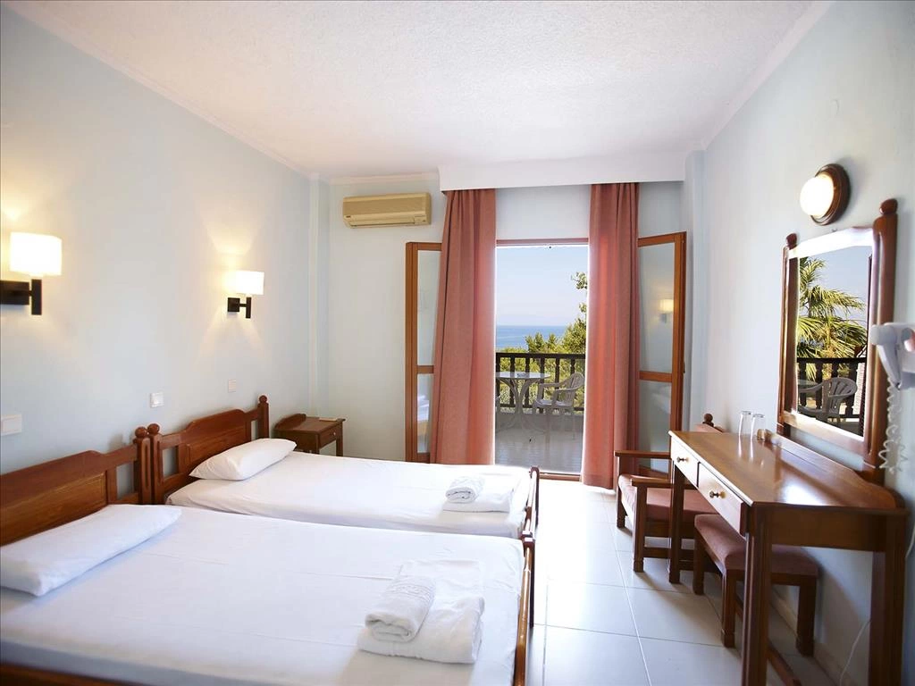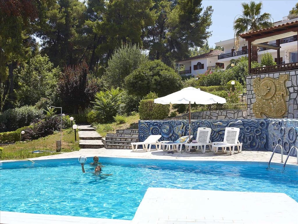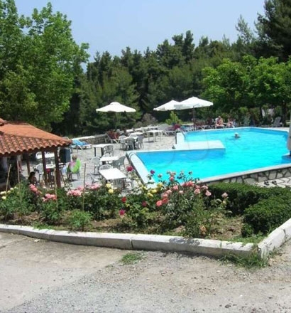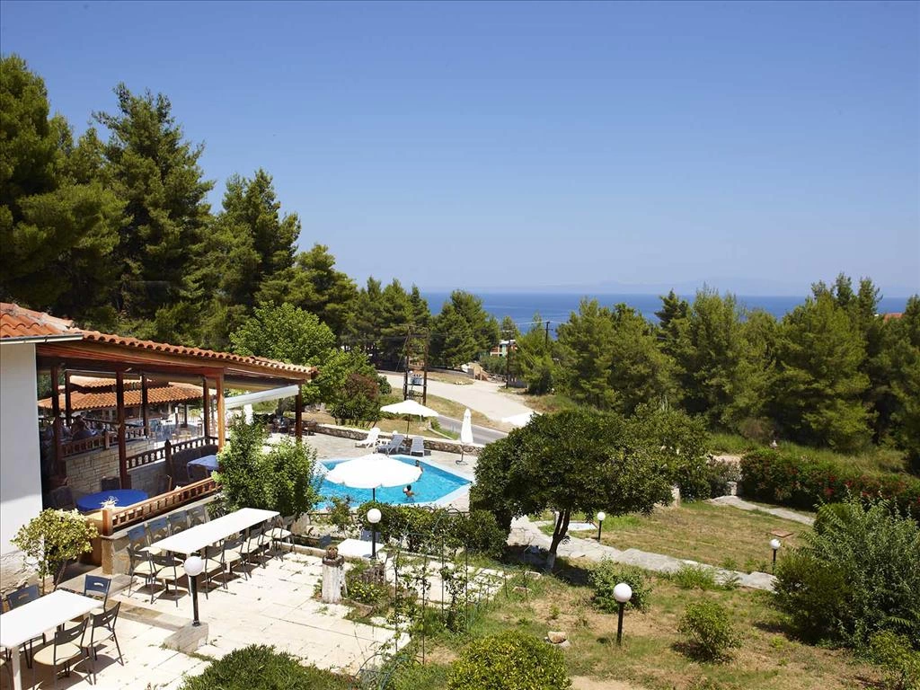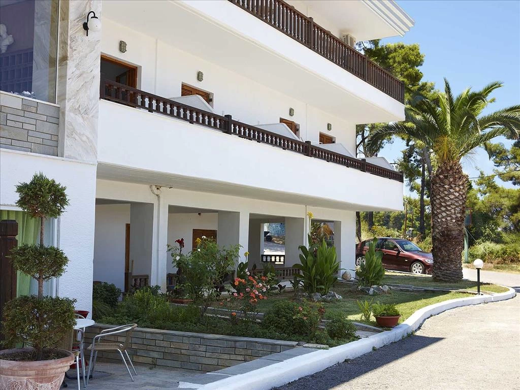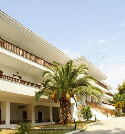 У 250 м від готелю, через дорогу (підземний перехід). На пляжі є кабінки для переодягання. Гарний, великий піщаний пляж з прекрасним видом на затоку Ситония, з кристально чистою водою, оточений соснами. Тут можна насолоджуватися усіма видами водного спорту. Пляж облаштований і пропонує різні послуги відпочиваючим.