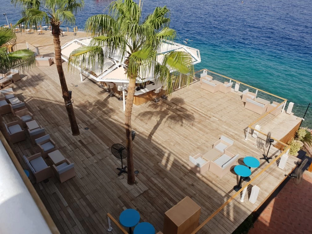 Власний піщаний пляж протяжністю 200 м і шириною 50 м, захід у море з берега. Пляжні рушники — безкоштовно. Бар на пляжі: з 11:00 до заходу.