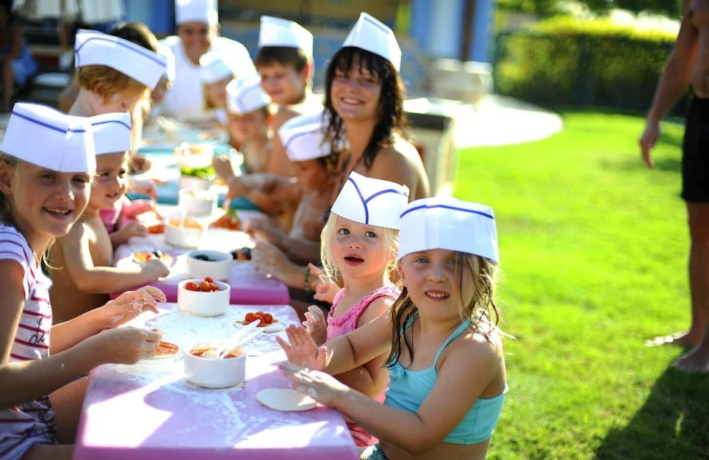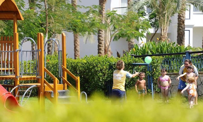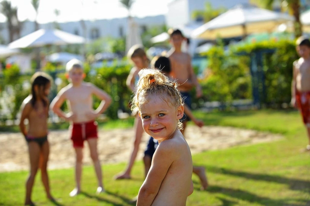 2 відкритих басейни з прісною водою, 1 басейн з підігрівом, площа басейнів 95 кв. м та 100 кв. м, глибина 0,4 і 0,6 м. Міні клуб для дітей у віці від 4 - 12 років. Джуніор клуб. Оренди дитячих колясок немає. 1 дитяча водна гірка.