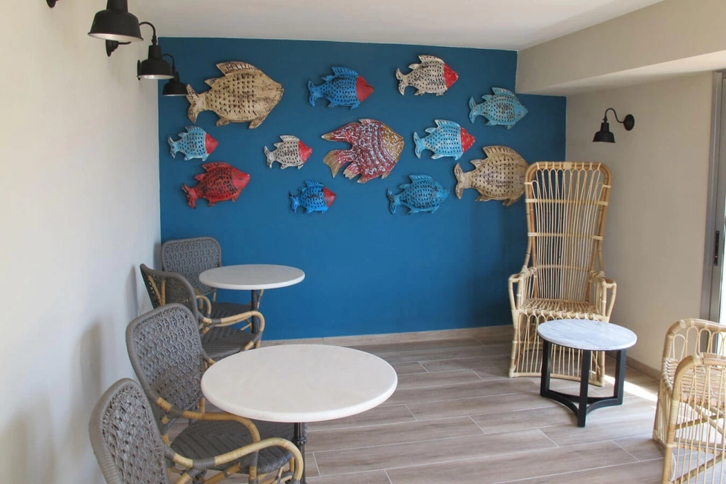 У ресторані, розташованому на першому поверсі, ви можете насолодитися різноманітним стравами міжнародної кухні. Стильний готель розташовує безліччю зручностей для розслаблення і приємного відпочинку. В готелі обладнана тераса з панорамним видом, звідки можна помилуватися середземноморським сонцем.