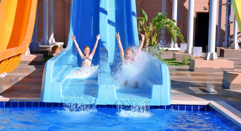 3 дитячих басейну, 3 дитячих басейну з 16 водними гірками у готелі Sea World, дитячий клуб для дітей від 4 – 12 років (години роботи: 10:00-12:30, 15:00-16:30), електронні ігри (платно), дитячий буфет в ресторані, стільчики для годування.