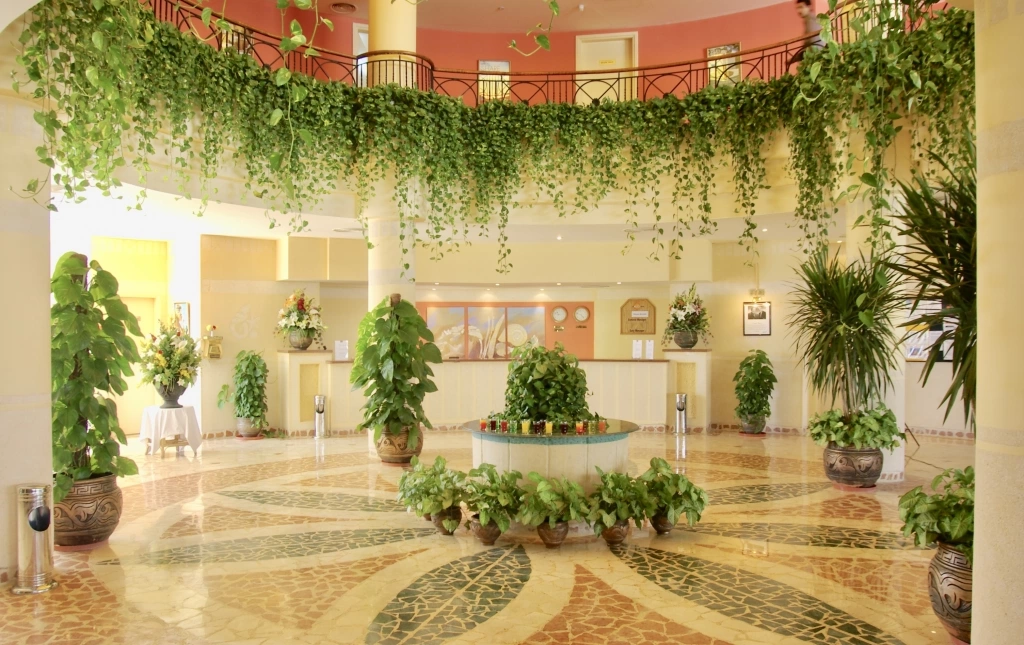 Цілодобова стійка реєстрації, сейф на ресепшн (безкоштовно), Wi-Fi в лобі платно (базовий доступ), інтернет-кафе в лобі (платно), магазини, 1 головний ресторан — шведський стіл на сніданок 07:00-10:00, обід 13:00-15:00 вечеря 19:00-21:00 (інтернаціональна кухня), 2 бари: лобі-бар (10:00-00:00, не входить в All), бар біля басейну (10:00 — до заходу)