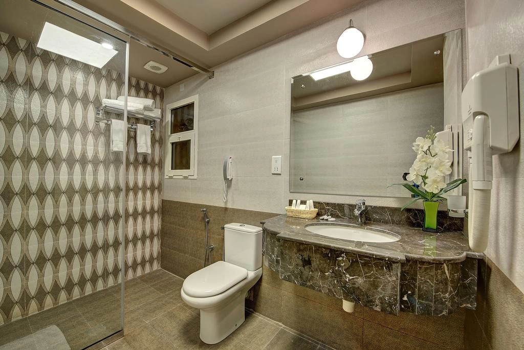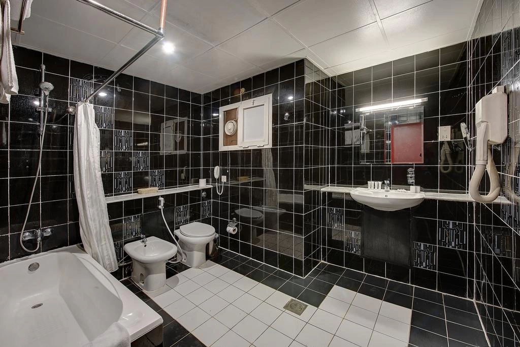 Кондиционер, ТВ со спутниковыми каналами, Wi-Fi (бесплатно), телефон, мини-бар, ванная комната, фен, room service: круглосуточно.
