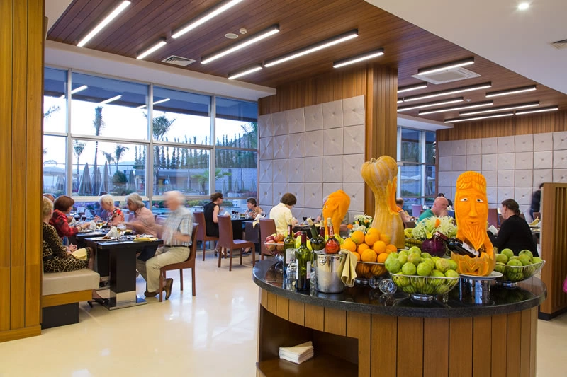 Цілодобова стійка реєстрації гостей, камера зберігання багажу, послуги по прасуванню одягу (платно), Wi-Fi в громадських місцях, безкоштовно, room service (платно), 1 конференц-зал (30-35 осіб), магазини, 1 основний ресторан (є дієтичне, вегетаріанське харчування), 1 ресторан a la carte (міжнародний, за попереднім записом, за тиждень проживання одн