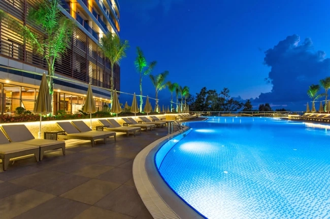 Тенісний корт безкоштовно (з твердим покриттям), прокат тенісних ракеток і м'ячів платно, освітлення тенісного корту платно, аквааеробіка безкоштовно, дартс безкоштовно, міні-гольф безкоштовно, пляжний волейбол безкоштовно, водні види спорту (парашут, водний скутер, водні лижі, банан) — платно, баскетбол безкоштовно, жива музика безкоштовно (3 рази