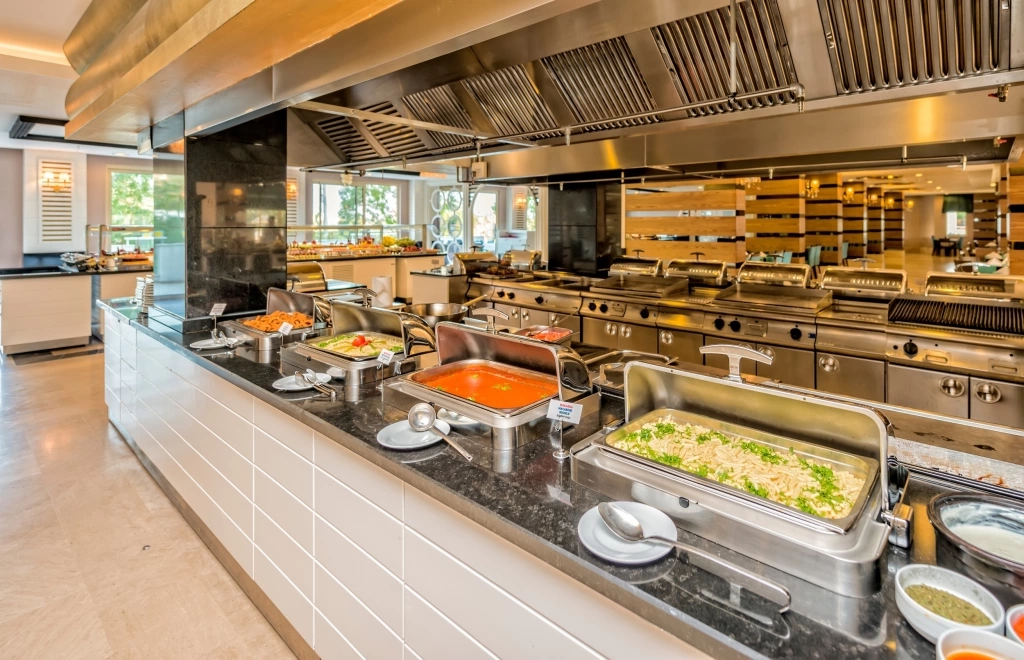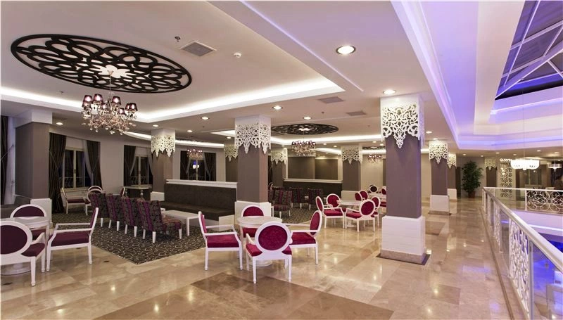 Сніданок 07:30-10:00, пізній сніданок 10:00-10:30, обід 12:30-14:00, вечеря 19:00-21:00, пізній вечеря 23:30-00:00. Шведський стіл. У денний час пропонуються закуски в Снек-барі і барі на пляжі. Ресторан Ottoman (турецька кухня) і Ресторан італійської кухні. Години роботи з 19:00 до 21:00, по попередній резервації. Можливо одне безкоштовне відвіду